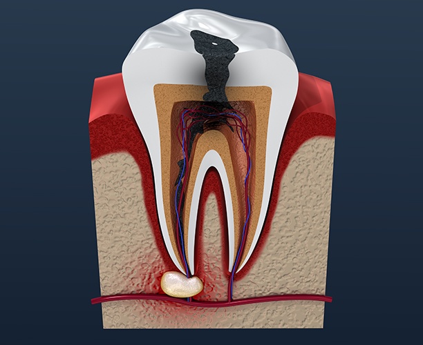 Most patients expect root canal therapy to be painful, but actually, you’ll likely feel much better after the procedure. We begin by numbing the area around the tooth. Then, we drill from the top of the tooth into the pulp. The dentist removes the pulp and nerve tissue. The tooth is refilled with a biocompatible substance called gutta percha. The access hole is resealed, and in most cases, we also place a dental crown to protect and strengthen the root canal treated tooth.